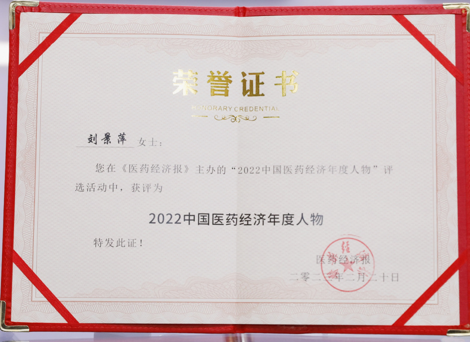 304am永利集团药业集团董事长刘景萍当选“2022中国医药经济年度人物”